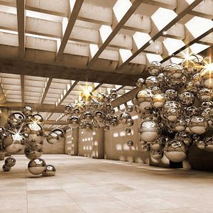 پوستر طرح گل بنفش و مکعب ۳D1469
