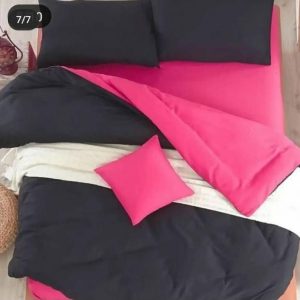 روتختی و ملحفه (دو نفره) طرح ساده صورتی و مشکی کد A12