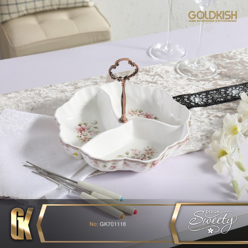 ظروف سرامیکی از ظروف آشپزخانه و پذیرایی پر مصرف در هر خانه است . استفاده از ظروف سرامیکی بعلت بهداشت و کیفیت بالا جزو پر طرفدار ترین ظروف آشپزخانه است . ظروف سرامیکی هم بعنوان وسایل دکوری و هم بعنوان ظروف پذیرایی و آشپزخانه تولید می شوند . این ظروف سرامیکی در مدل های متنوعی از جمله سینی و بشفاب و سالاد خوری و میوه خوری و شیرینی خوری و گلدان و پیاله و کاسه و انواع مختلف ظروف مصرفی و دکوری آشپزخانه ارائه می شوند . ظروف سرامیکی ارائه شده در دریم لایف از شرکت گلد کیش است . ظروف سرامیکی ارائه شده درمدل های ساده و گلدار و با تنوع بالا می تواند زینت بخش خانه شما باشد . گلدان های دکوری سرامیکی مناسب برای ویترین و دکور و یا روی میز هستند و البته گل های مصنوعی ارائه شده در دریم لایفم هم می تواند پر کننده این گلدان های زیبای سرامیکی باشد . این ظروف با کیفیت بالا و زیبایی خاص را می توانید در قسمت محصولات و وسایل تزیینی خرید نمایید . زندگی رویایی براتون در خرید این ظروف سرامیکی آرزوی شادی و سلامتی دارد.